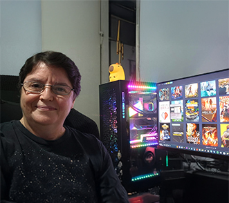 “Tenho dois computadores, um PS3 e um PS5 e passo boa parte do tempo intercalando entre esses sistemas, aproveitando a enorme quantidade de jogos que existem. Adoro jogos de RPG, aventura, simulações e corridas.” Fora os jogos, ela adora ler. “Tenho uma biblioteca de cerca de 800 livros que também me rende um bom passatempo. Ou seja, tédio é uma coisa que não posso reclamar de ter!”.